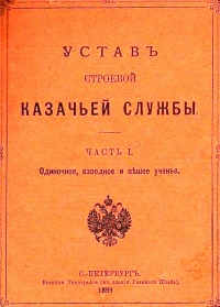- "Устав строевой казачьей службы. Часть 1. Одиночное, взводное и пешее учение" (по изданию 1899 г, 256 стр, илл)